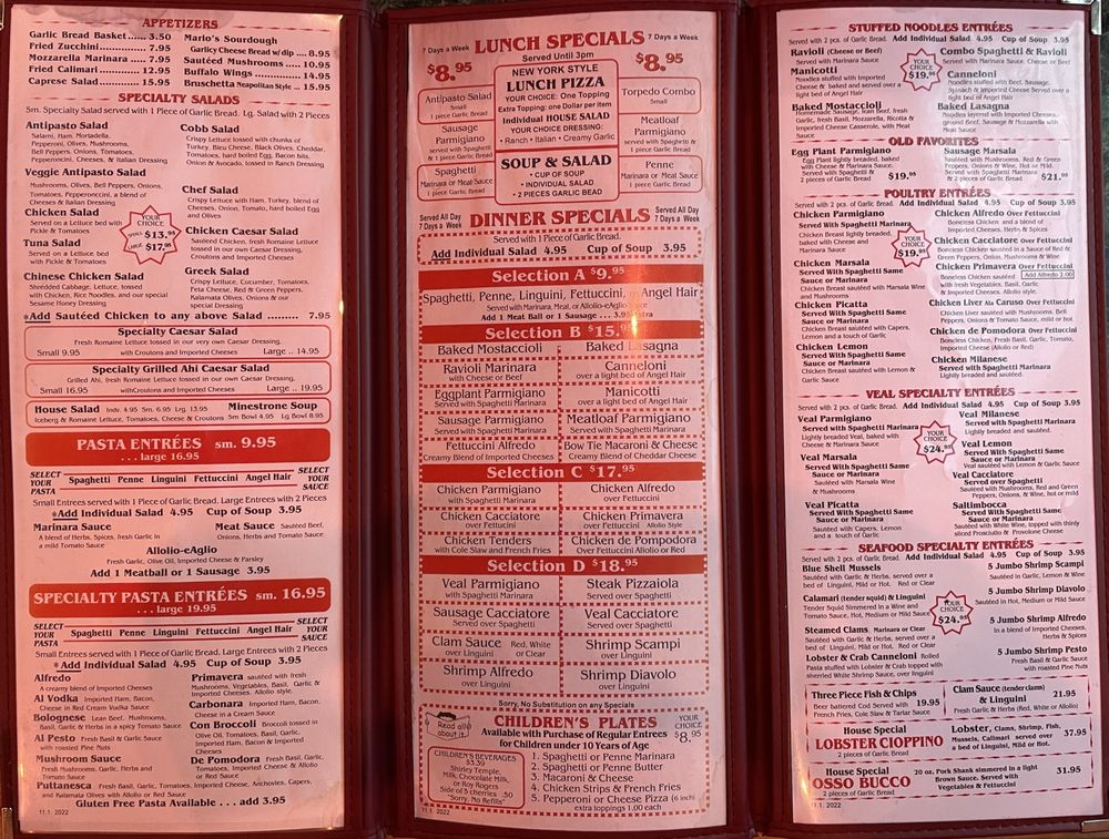 - Seafood Lovers: Dive into an array of seafood dishes like shrimp scampi and mussels marinara.